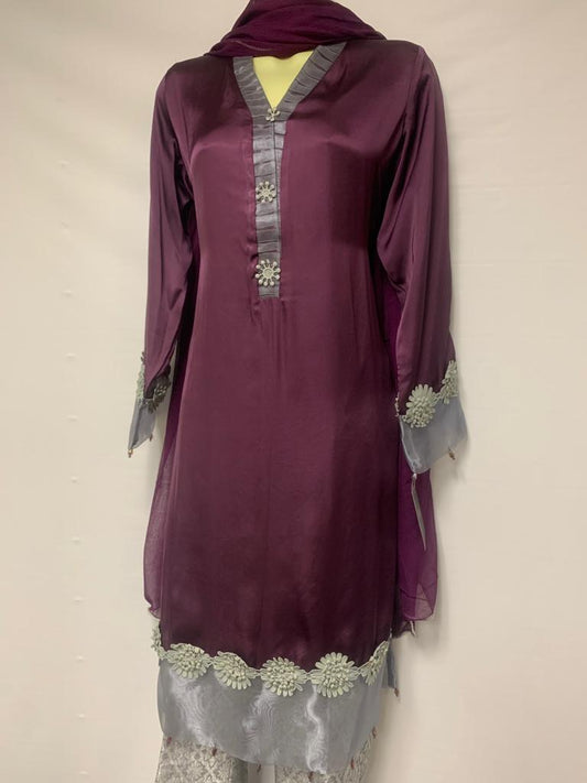 Sold outPakistani Plum Silk Women Outfit